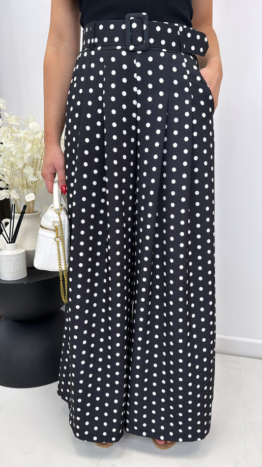 DEMI black polka dot wide leg trousers