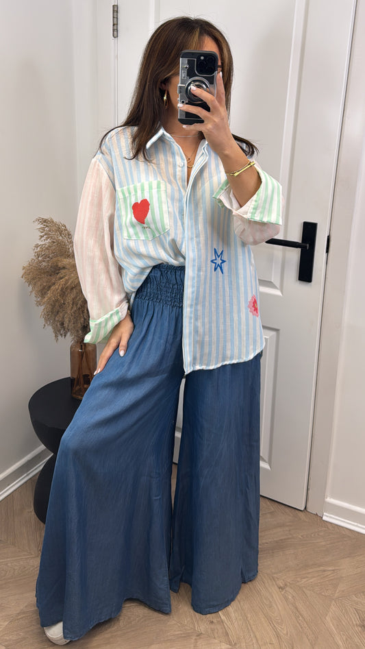 BLOSSOM blue stripe cherry blossom oversize shirt
