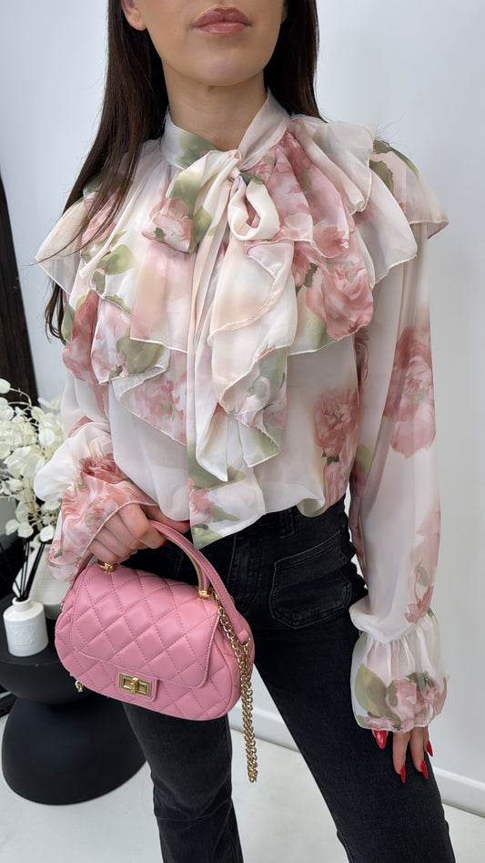 SERINA blush pink sheer floral print blouse