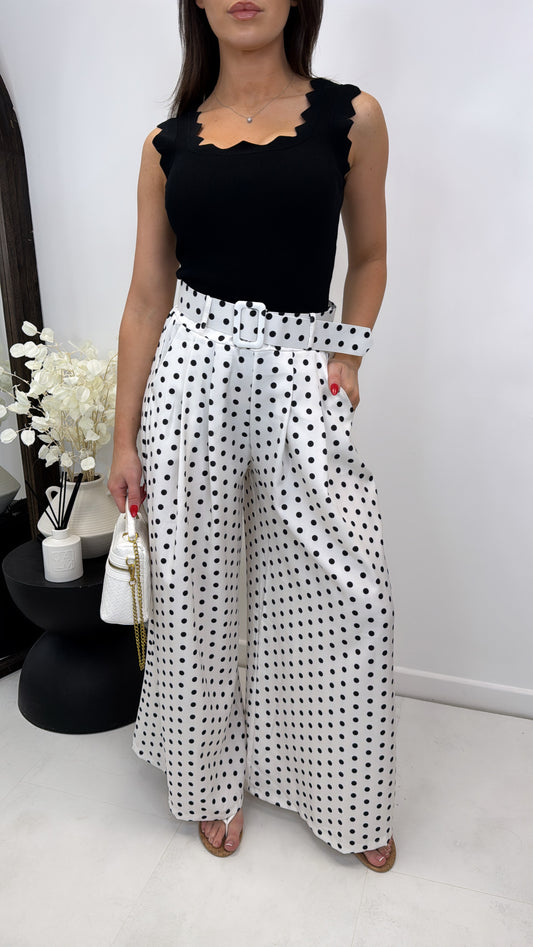 DEMI white polka dot wide leg trousers