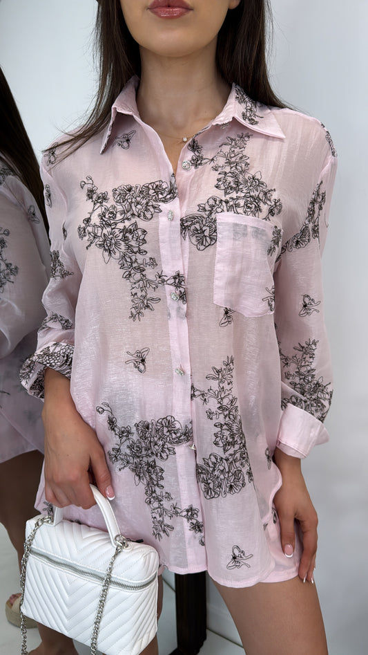 ALIYAH pink embroidered semi sheer shorts co-ord
