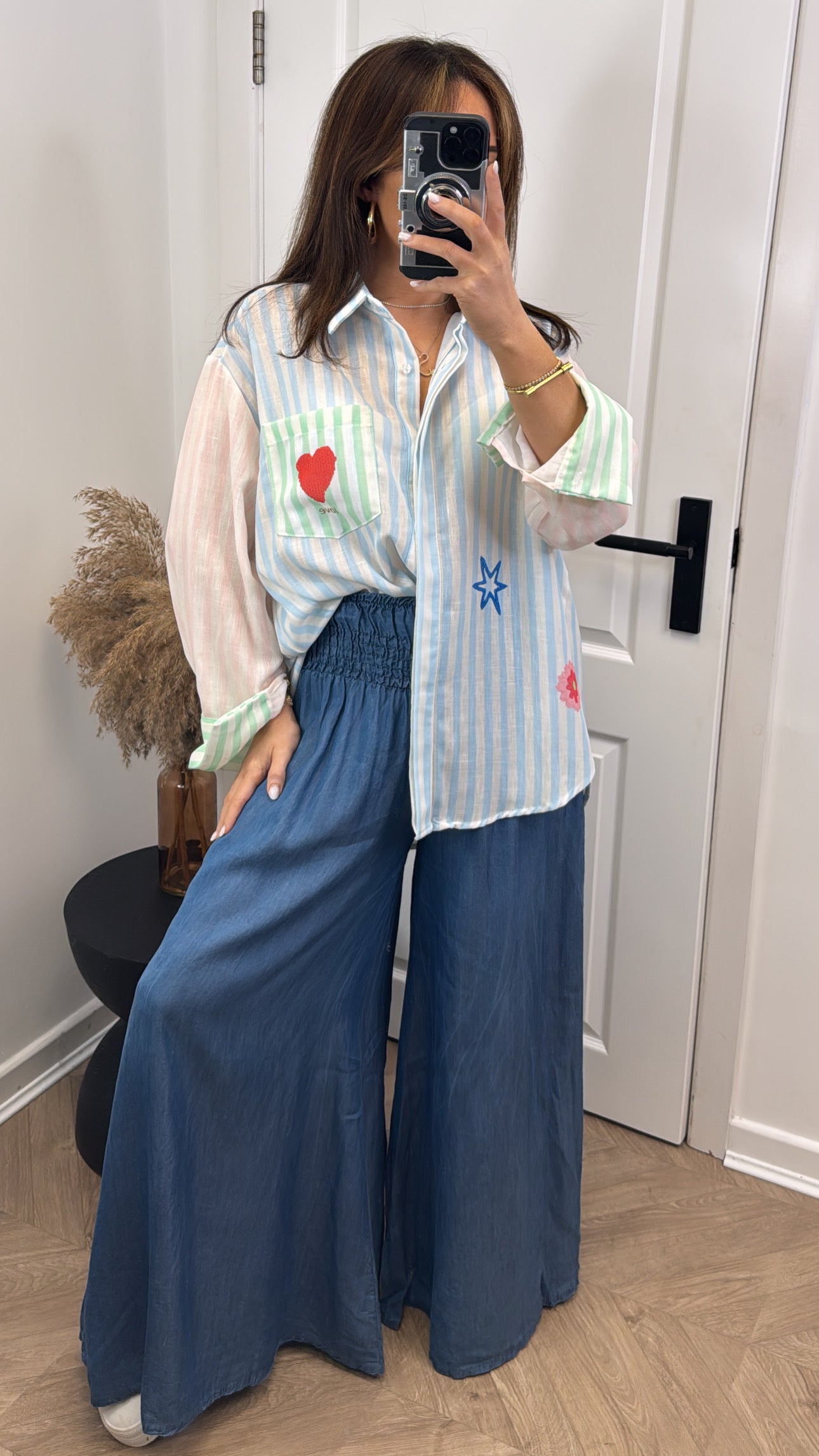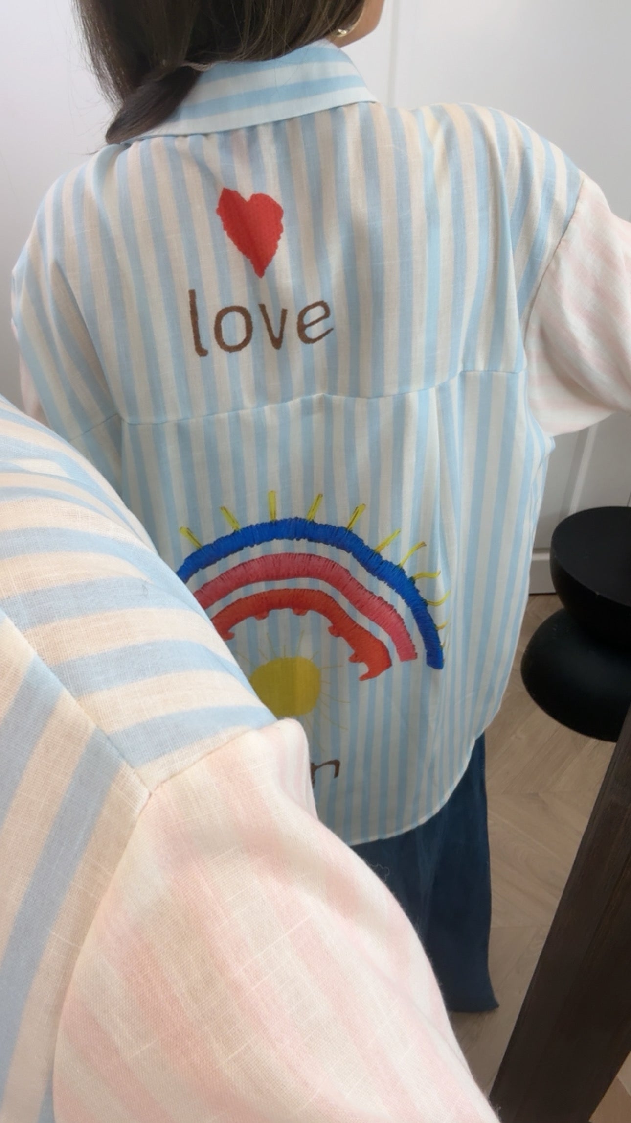 The ALIYAH striped oversize printed shirt is your go-to piece for effortless summer style. Featuring a vibrant rainbow and sun print design paired with classic stripes, this relaxed-fit shirt works beautifully layered over a bikini or styled with denim for a casual, put-together look. The dipped hem adds contemporary edge while the generous oversize cut ensures comfort and movement. Perfect for beach days, festival season, or weekend adventures—versatile enough to transition from day to night.