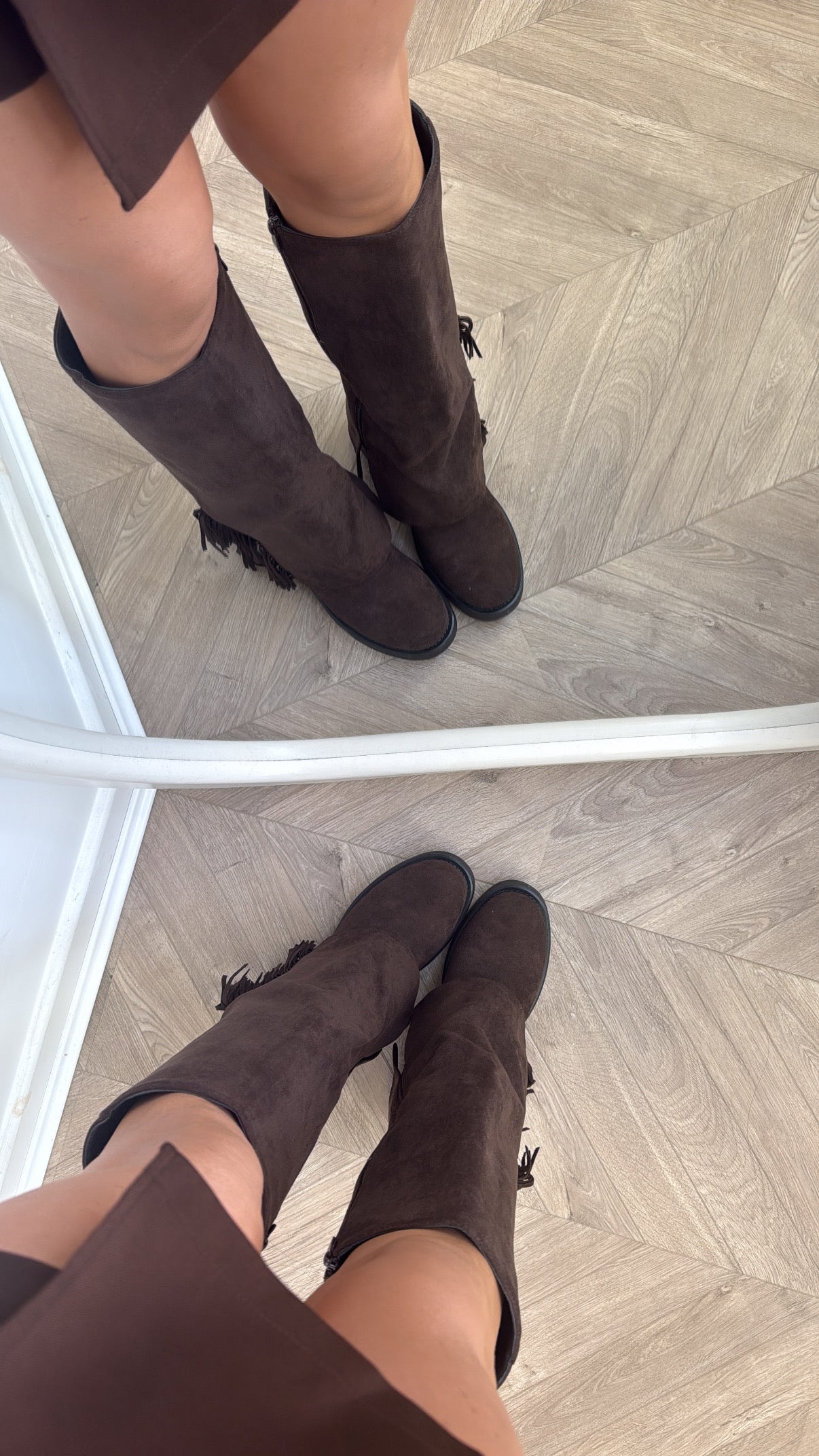 AMAYA brown faux suede tassle boots