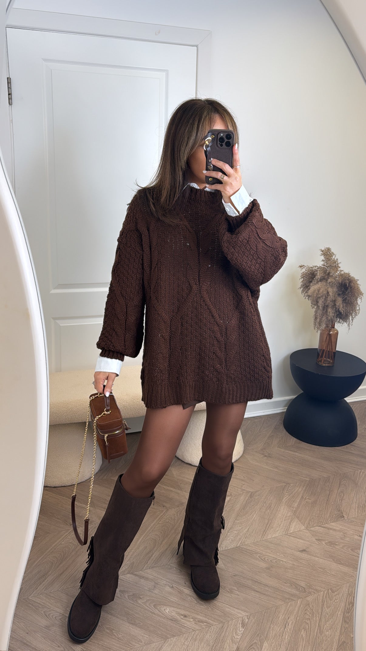 CALLIE brown cable knit jumper