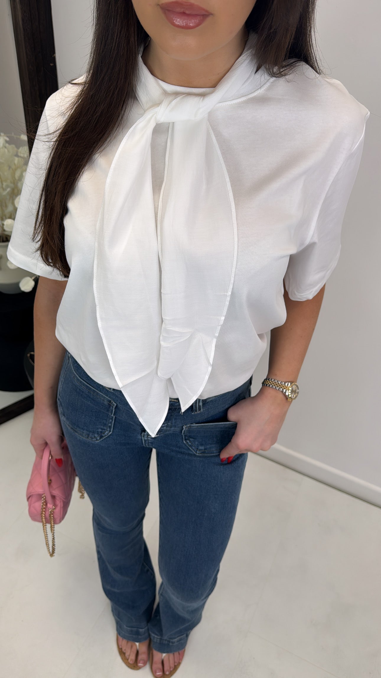 Introducing the CARRIE white t-shirt, your new spring essential. Crafted from luxuriously soft fabric that feels gentle against the skin, this casual chic piece features an elegant neck tie detail that elevates any everyday look. The soft pink hue pairs effortlessly with your wardrobe staples, making it ideal for layering or wearing solo. Whether you're heading to brunch or running errands, this versatile tee delivers understated sophistication with comfort you'll love wearing all season long.