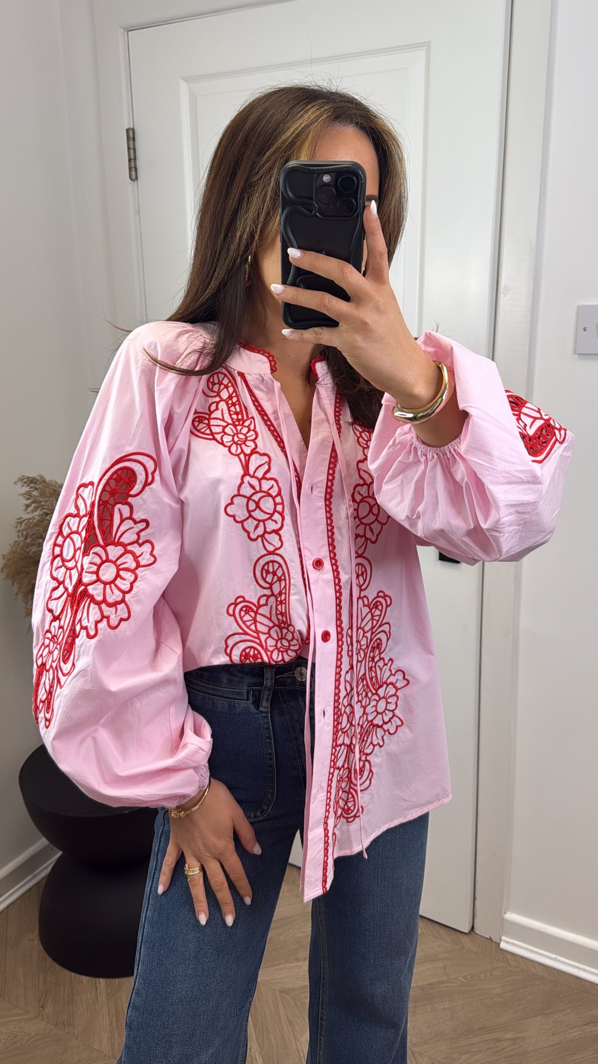DAPHNE pink embroidered oversized blouse
