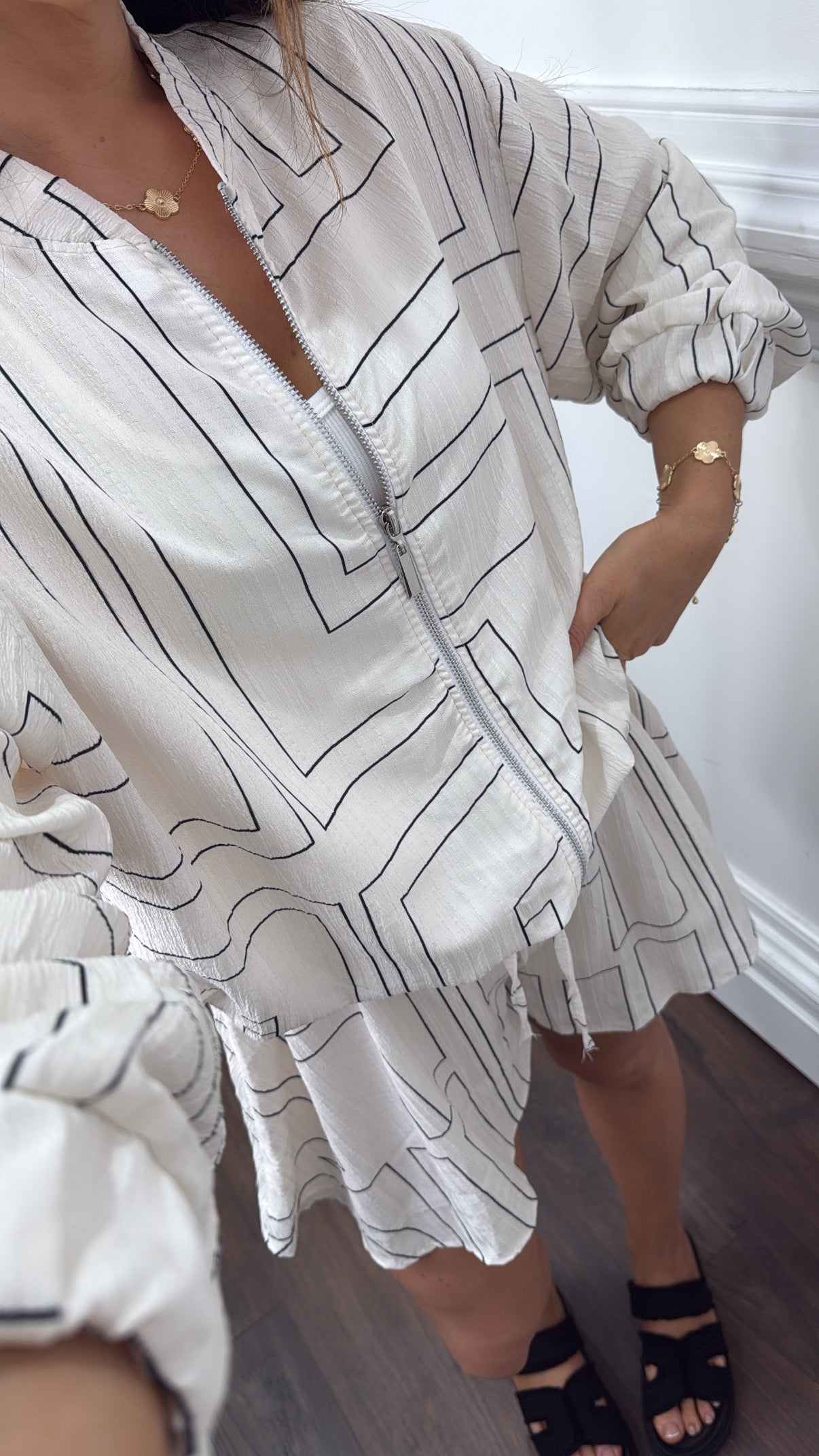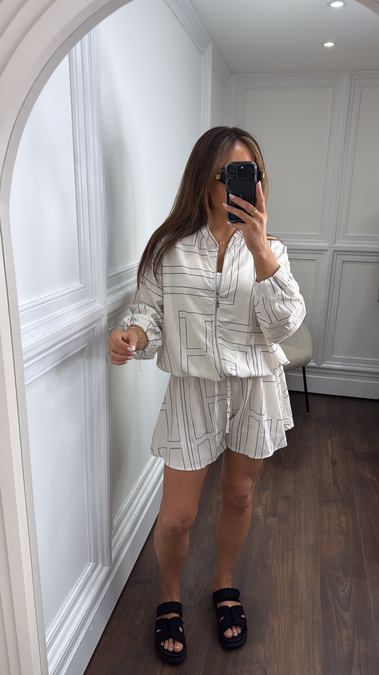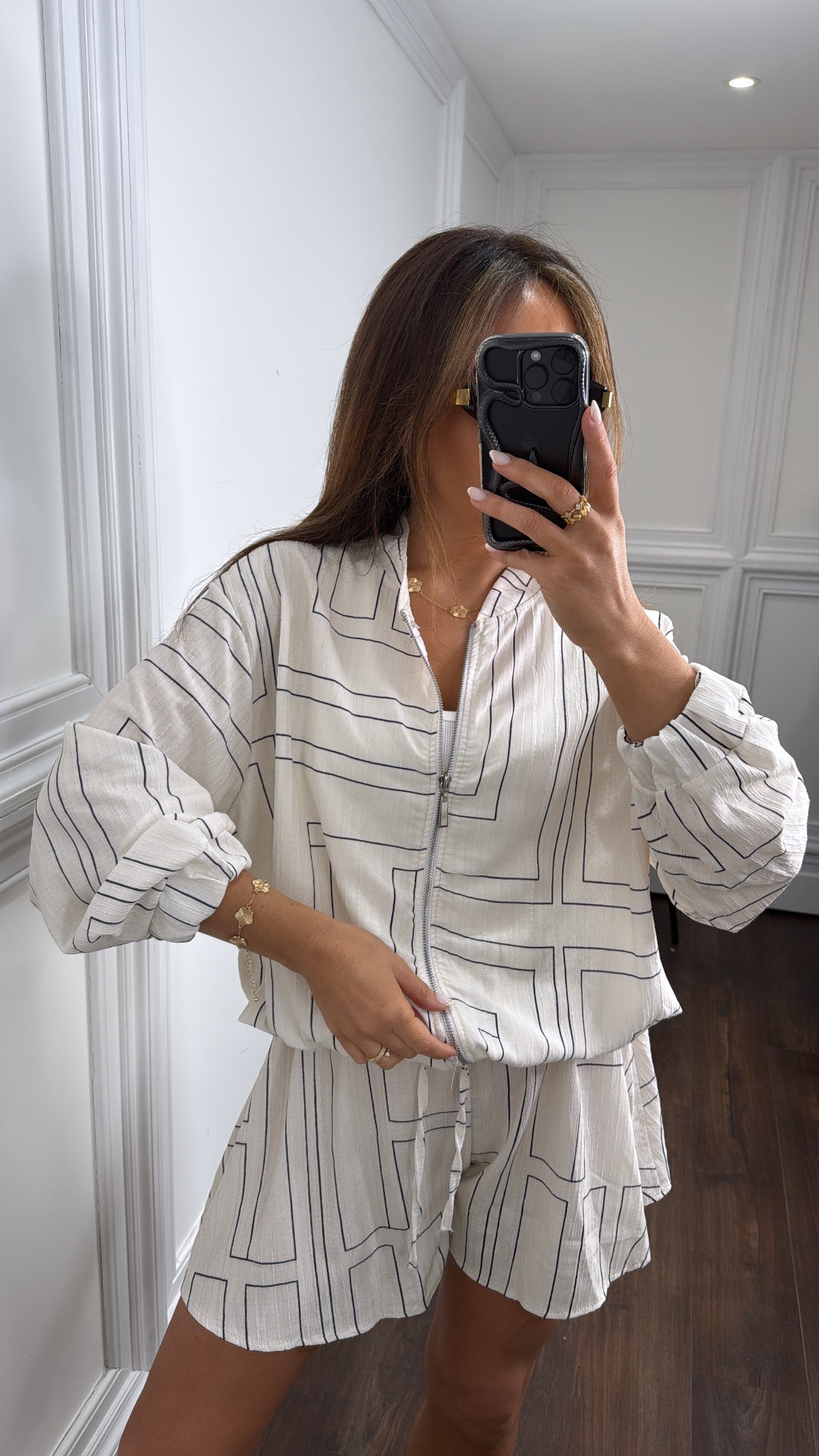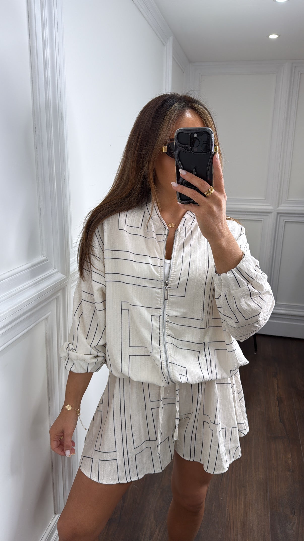 GEOMETRIC cream and black zip jacket and shorts co-ord