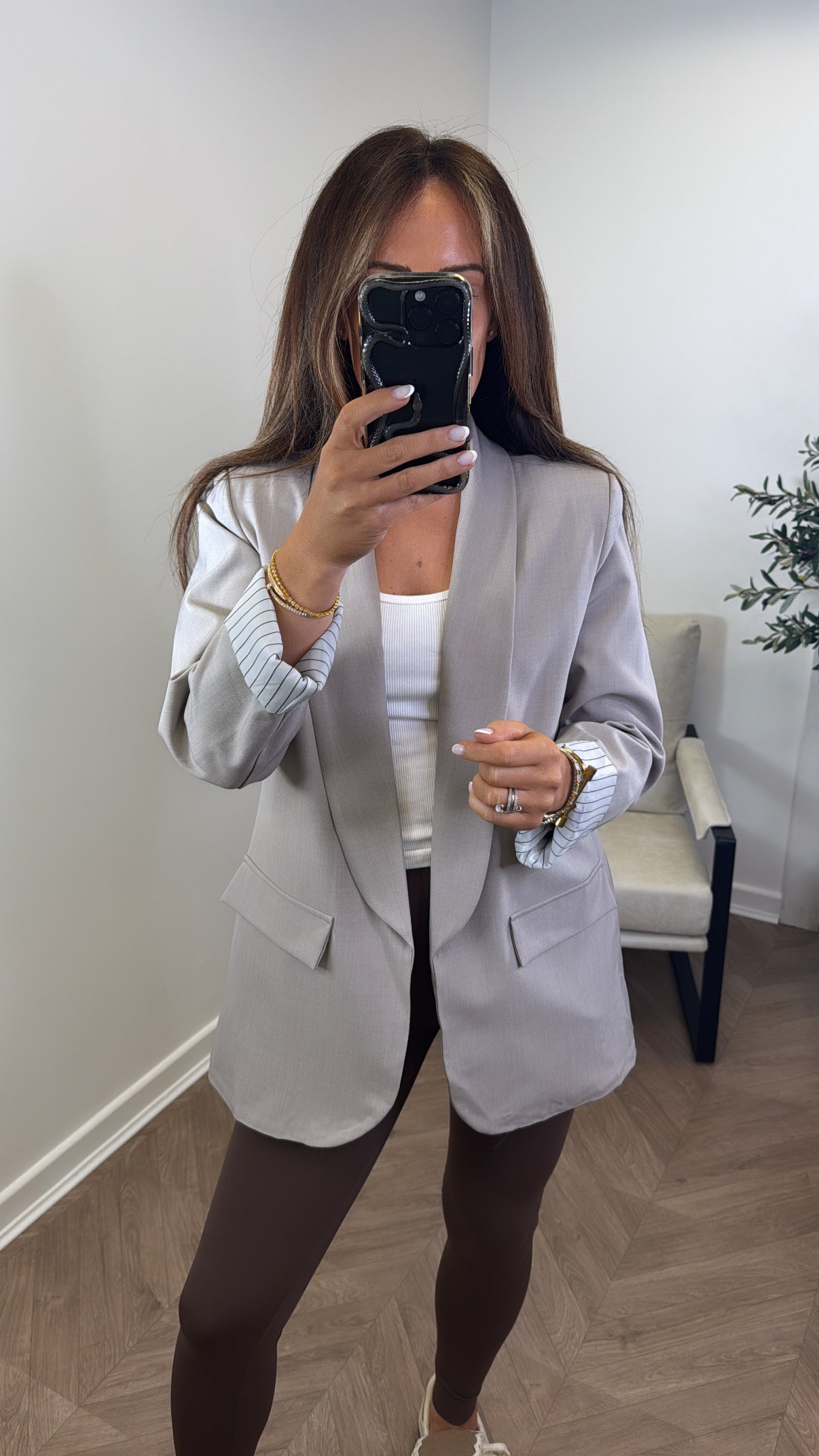 Elevate your wardrobe with the JENNIFER beige blazer, designed for a smart and stylish statement. Featuring a sleek silhouette and contrasting pinstripe cuffs, this blazer brings a refined edge to both professional and casual looks. Perfect for those who appreciate subtle details that stand out.