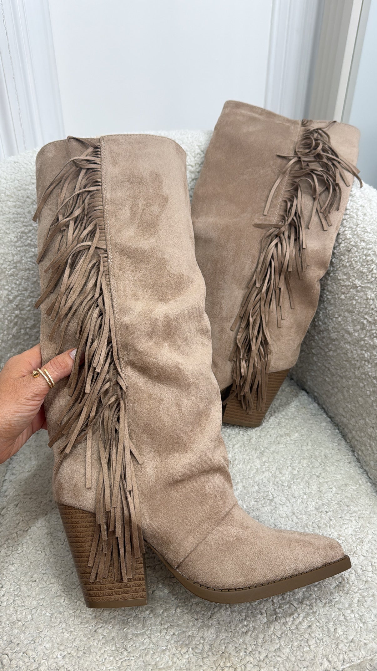 JOSIE beige tassel knee high cow boy boots