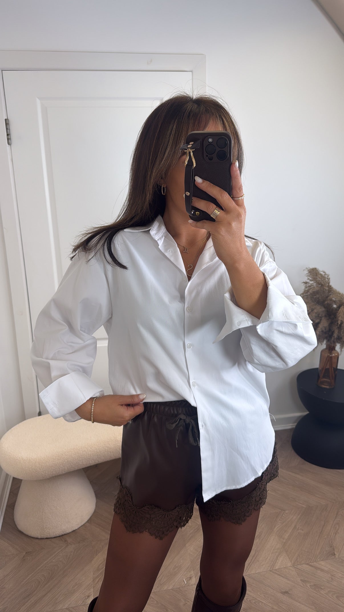 The JOSIE white shirt is a versatile wardrobe essential that effortlessly transitions from day to night. Its clean, crisp silhouette pairs beautifully with luxe jumpers for an elevated layered look, while standing alone as a polished standalone piece. Crafted with smart styling in mind, this shirt works equally well dressed up for the office or down for weekend wear. A timeless investment that anchors any outfit with understated sophistication.