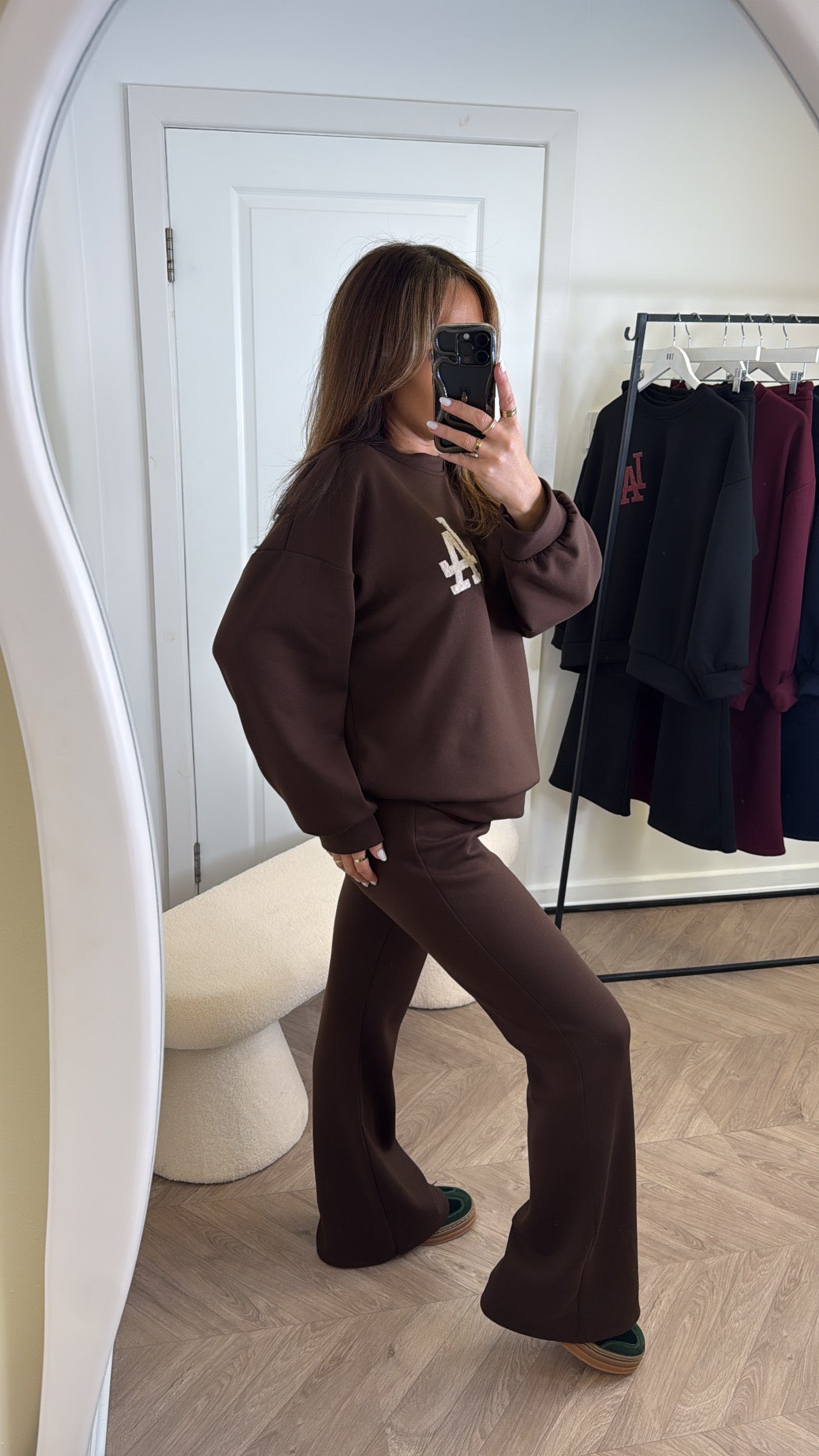 Elevate your ath-leisure wardrobe with the LALA brown sweatshirt lounge set. Featuring a chic LA logo design, this set blends sporty vibes with cozy comfort, perfect for effortless days at home or casual outings. The soft fabric and relaxed fit ensure all-day ease while keeping you stylish and on-trend.