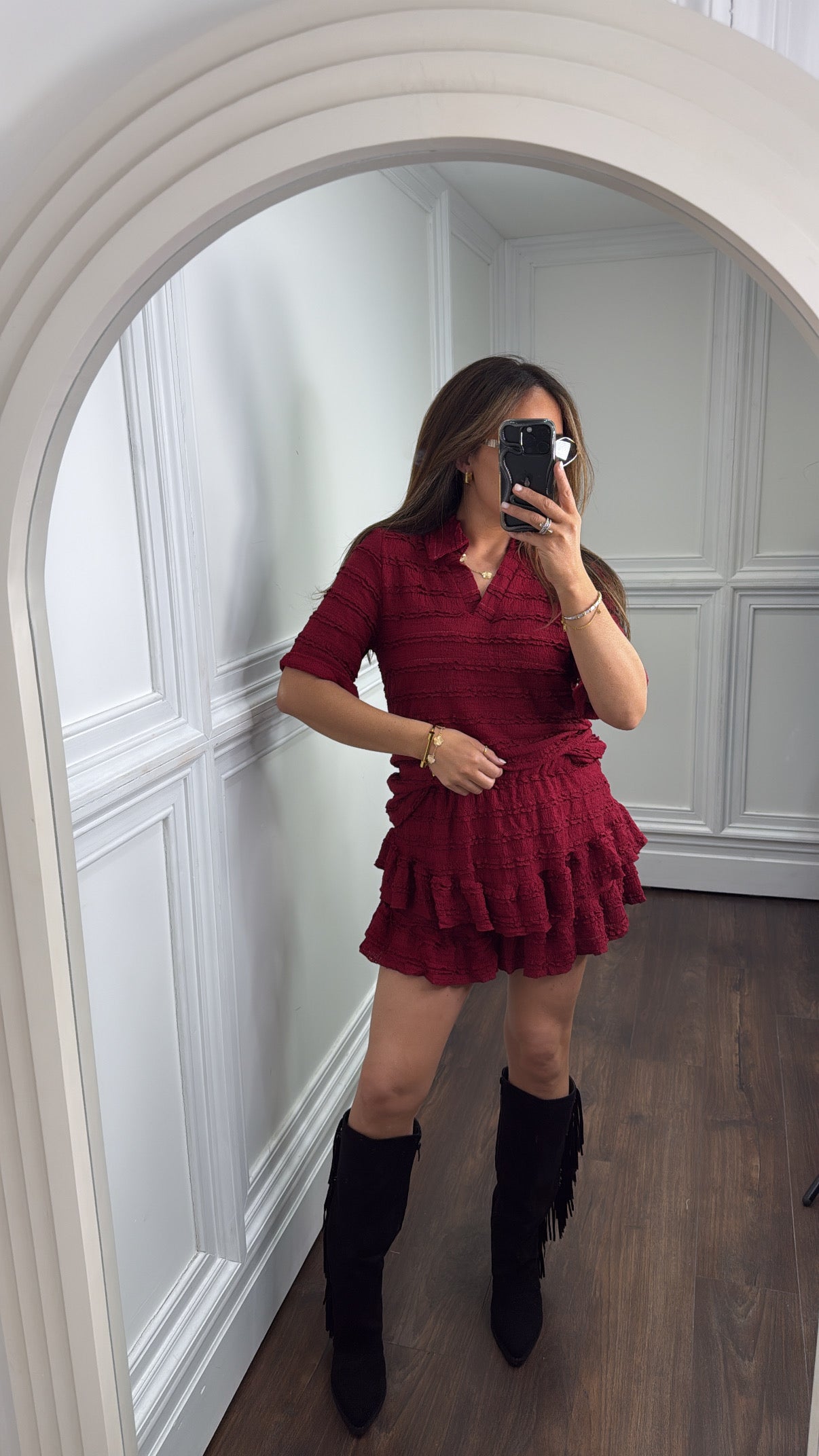 LEXIE burgundy textured ruffle skort co-ord