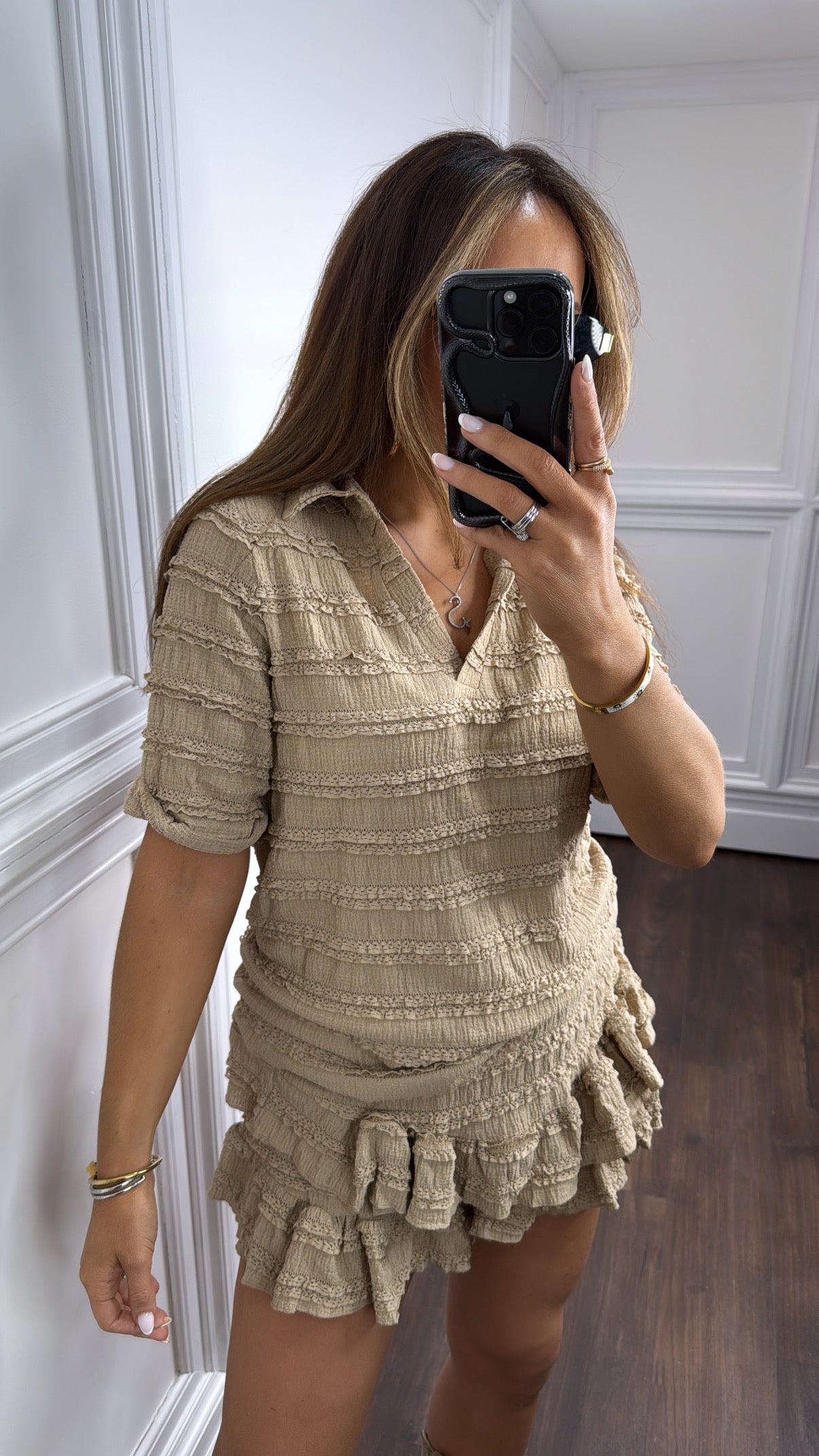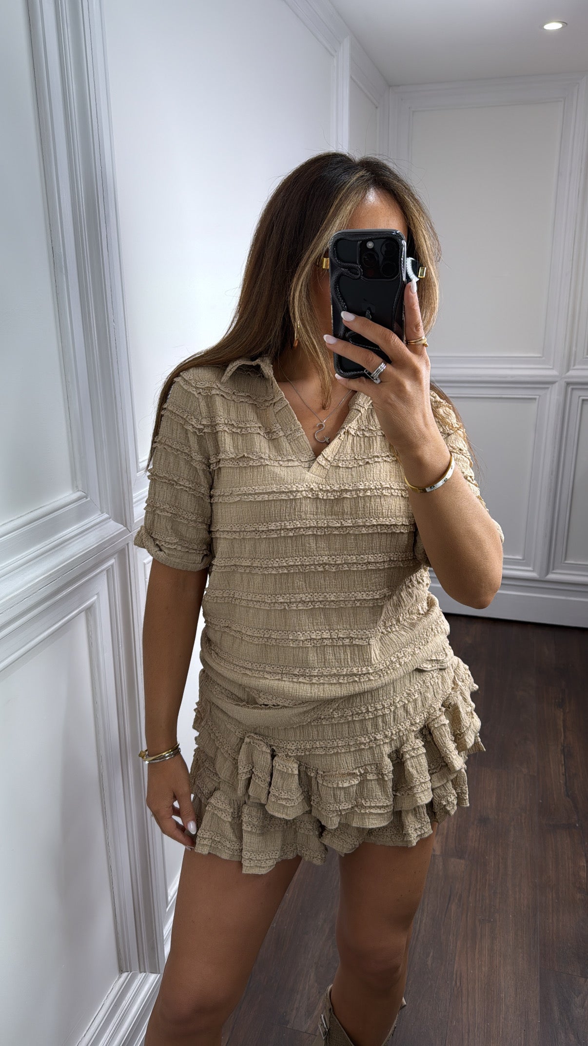 LEXIE mocha textured ruffle skort co-ord