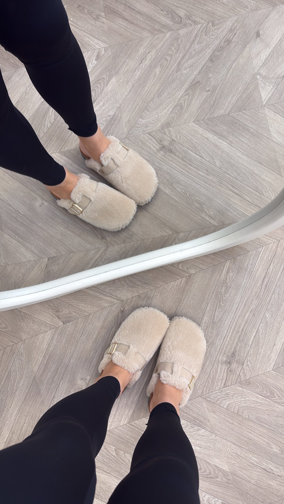 Step into effortless style with the ASPEN beige faux fur mules. Featuring a plush, cute faux fur upper and an elegant gold buckle detail, these slip-on mules combine comfort with a chic, modern edge. Perfect for adding a smart, fashionable touch to any outfit.
