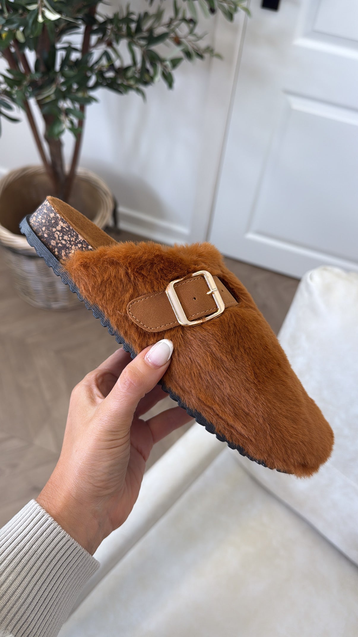 Step into effortless style with the ASPEN camel faux fur mules. Featuring a plush, cute faux fur upper and an elegant gold buckle detail, these slip-on mules combine comfort with a chic, modern edge. Perfect for adding a smart, fashionable touch to any outfit.