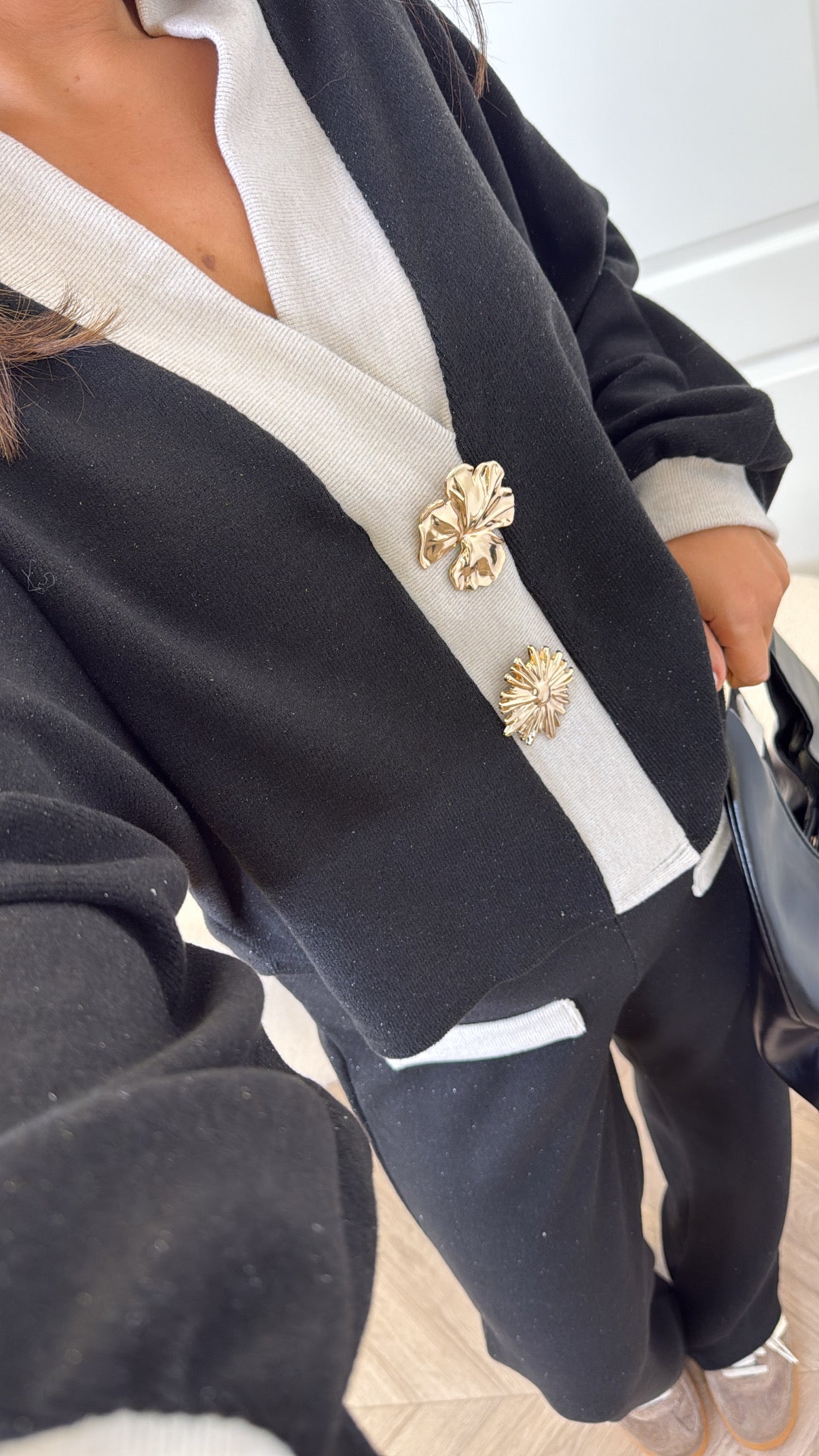 NOVA black v-neck top and trousers co-ord set