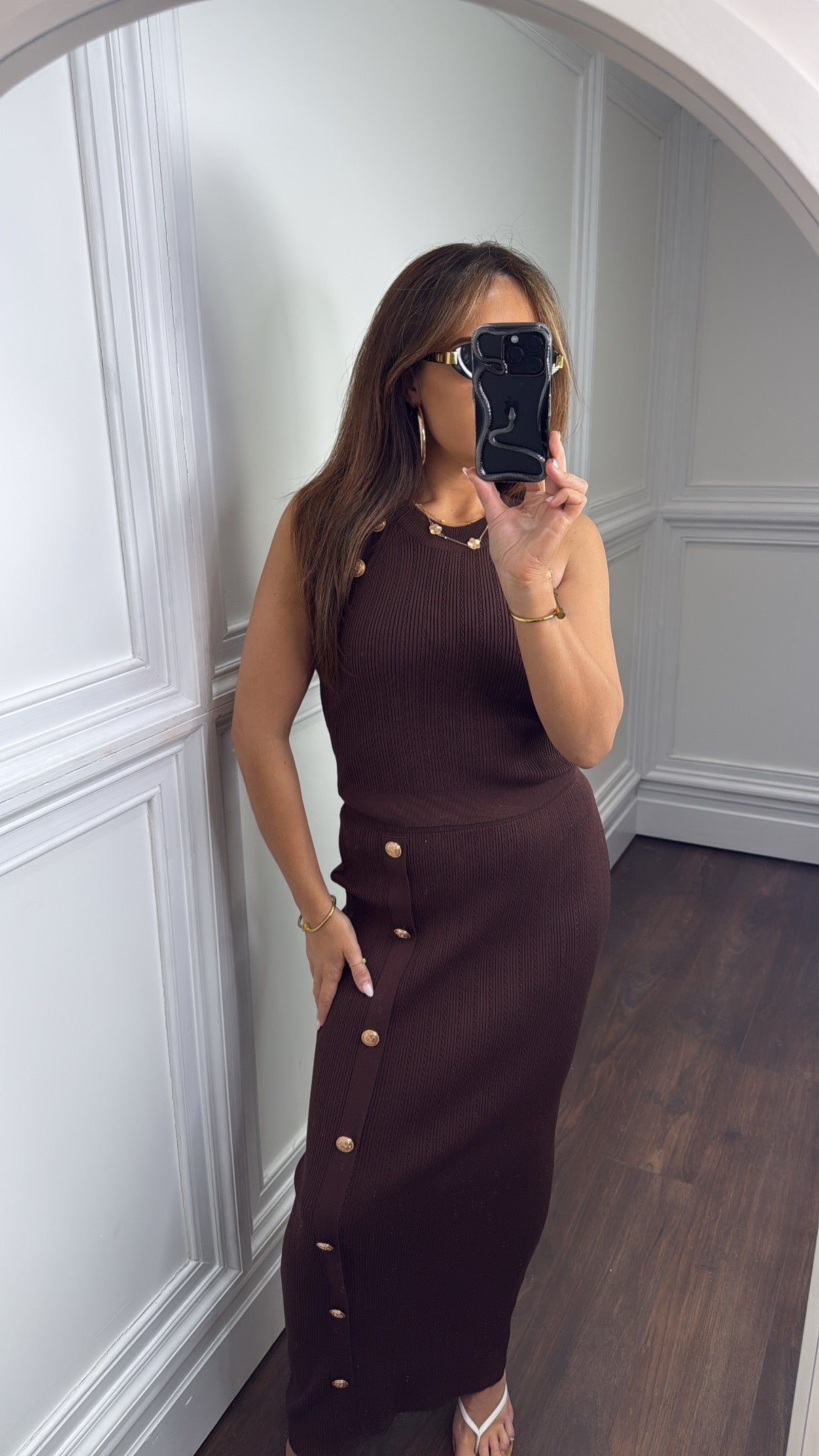 OLIVIA brown gold button top and maxi skirt co-ord