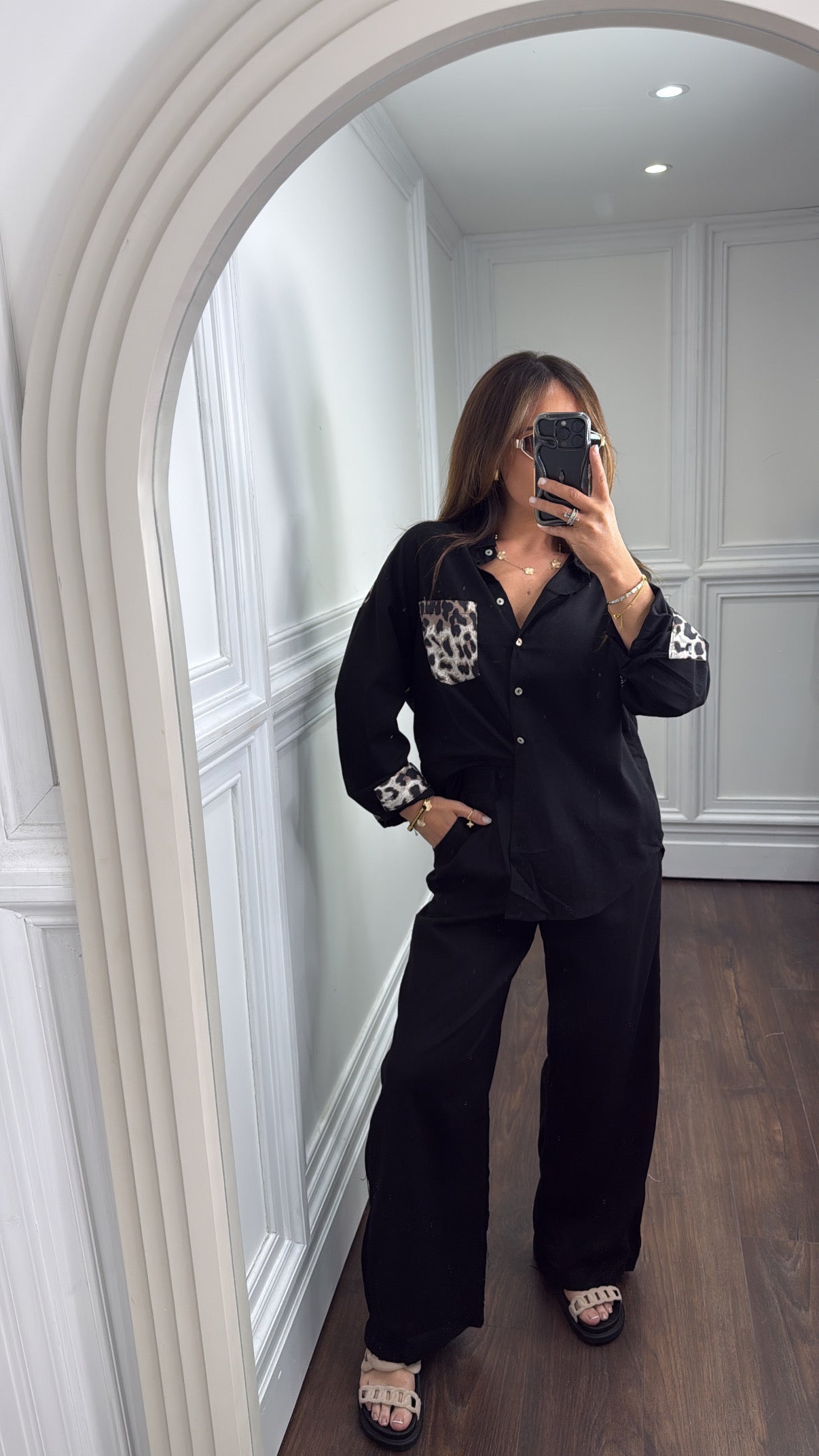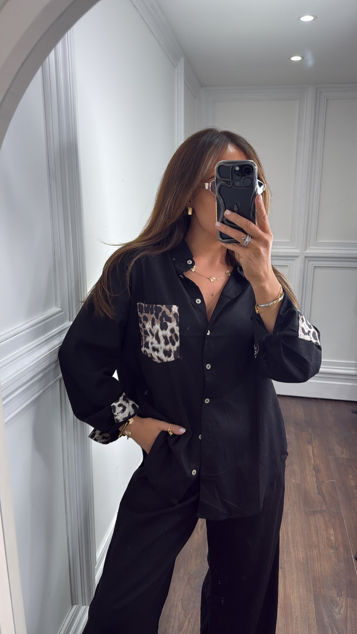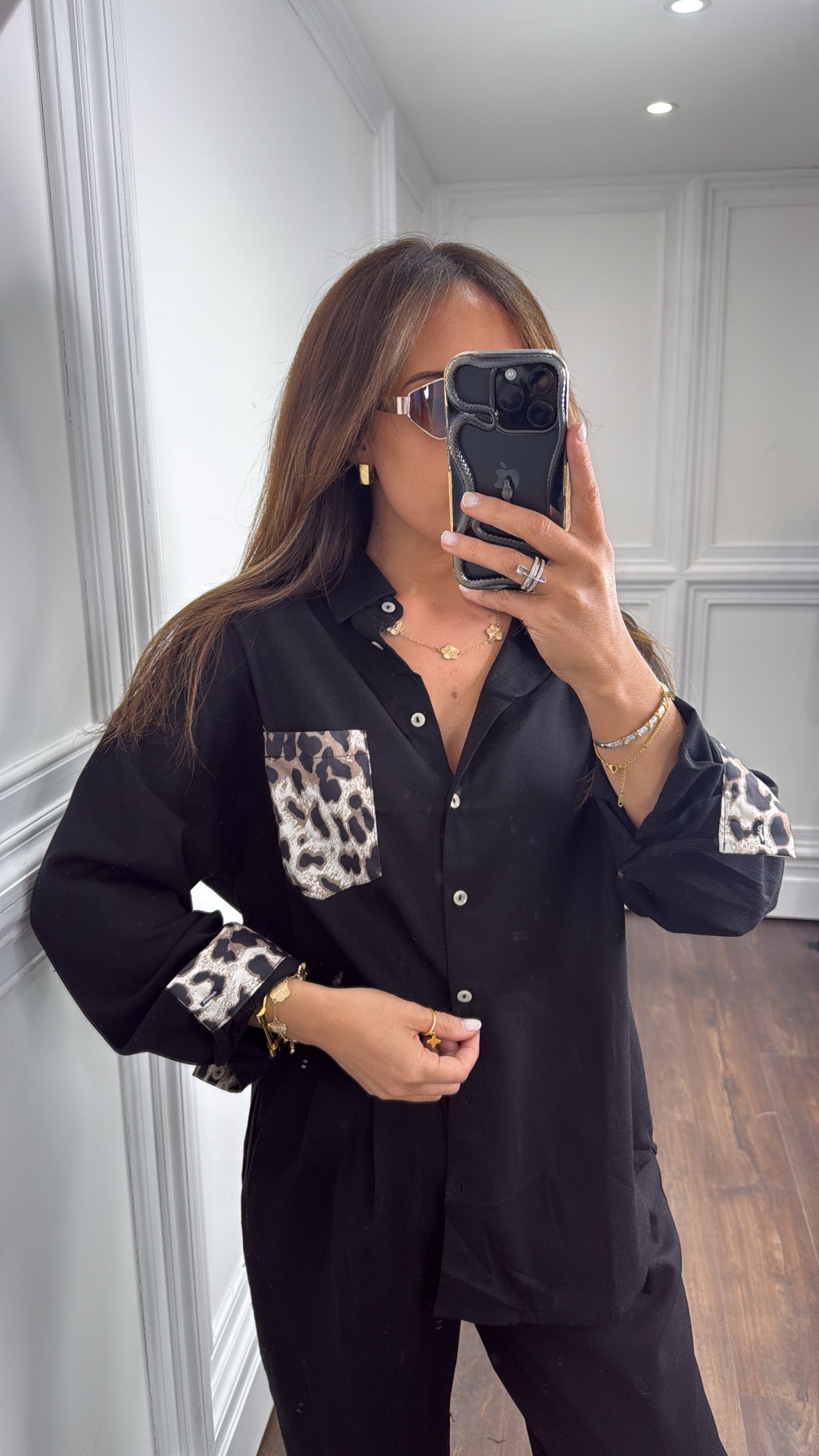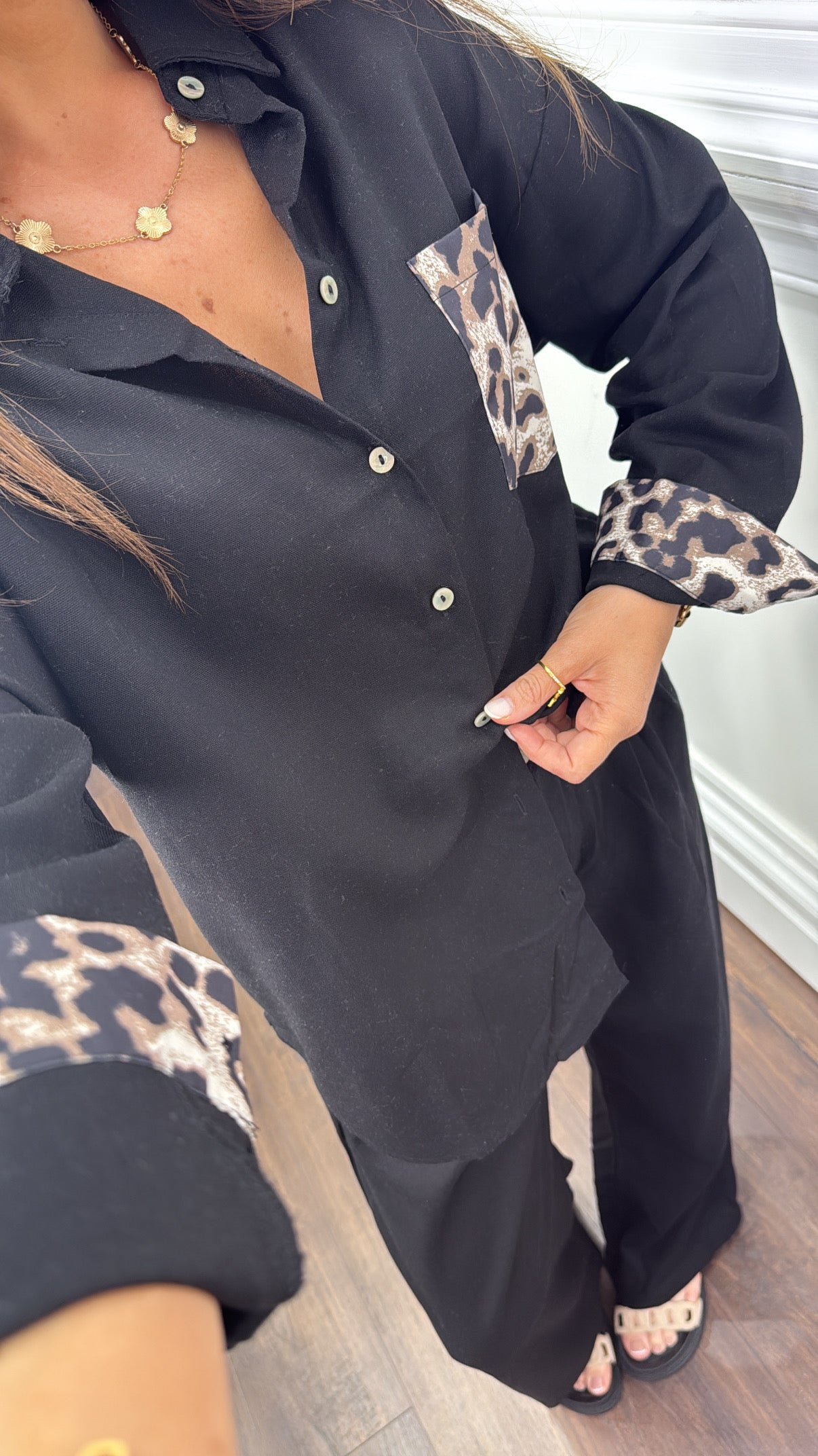 Leopard print contrast front pocket, cuffs and shoulder detail