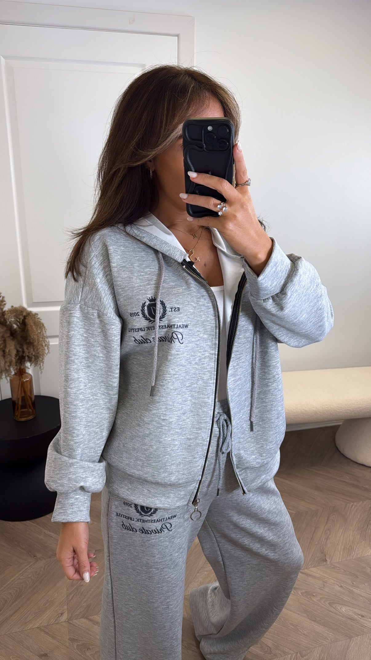 TAMZIN grey zip up jacket tracksuit with logo (longer length)