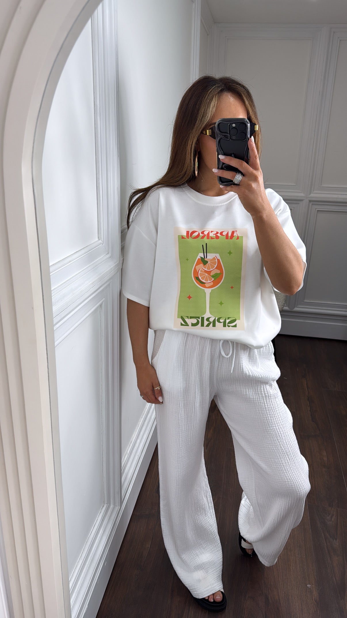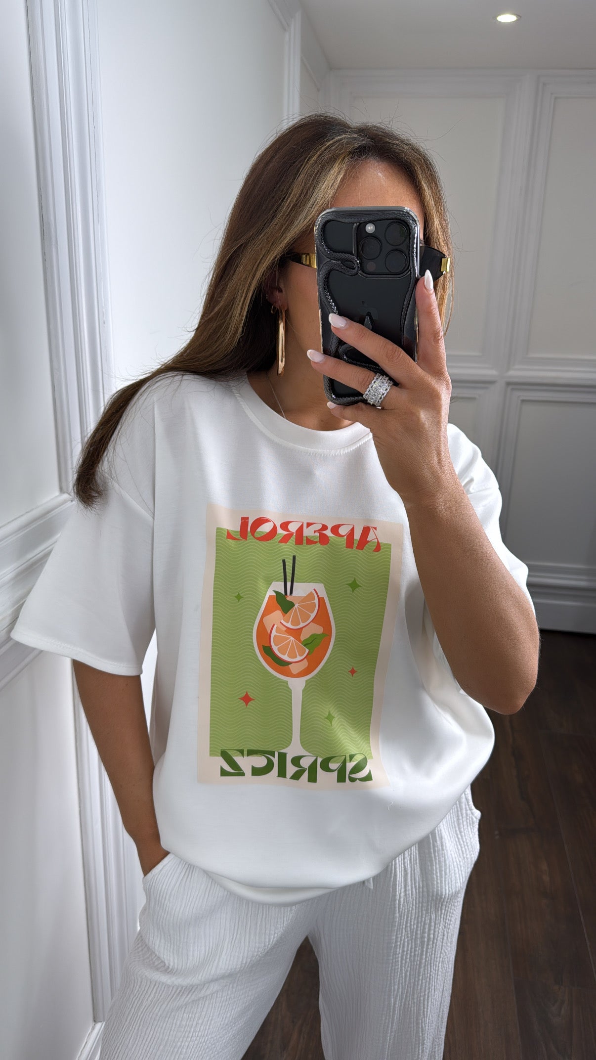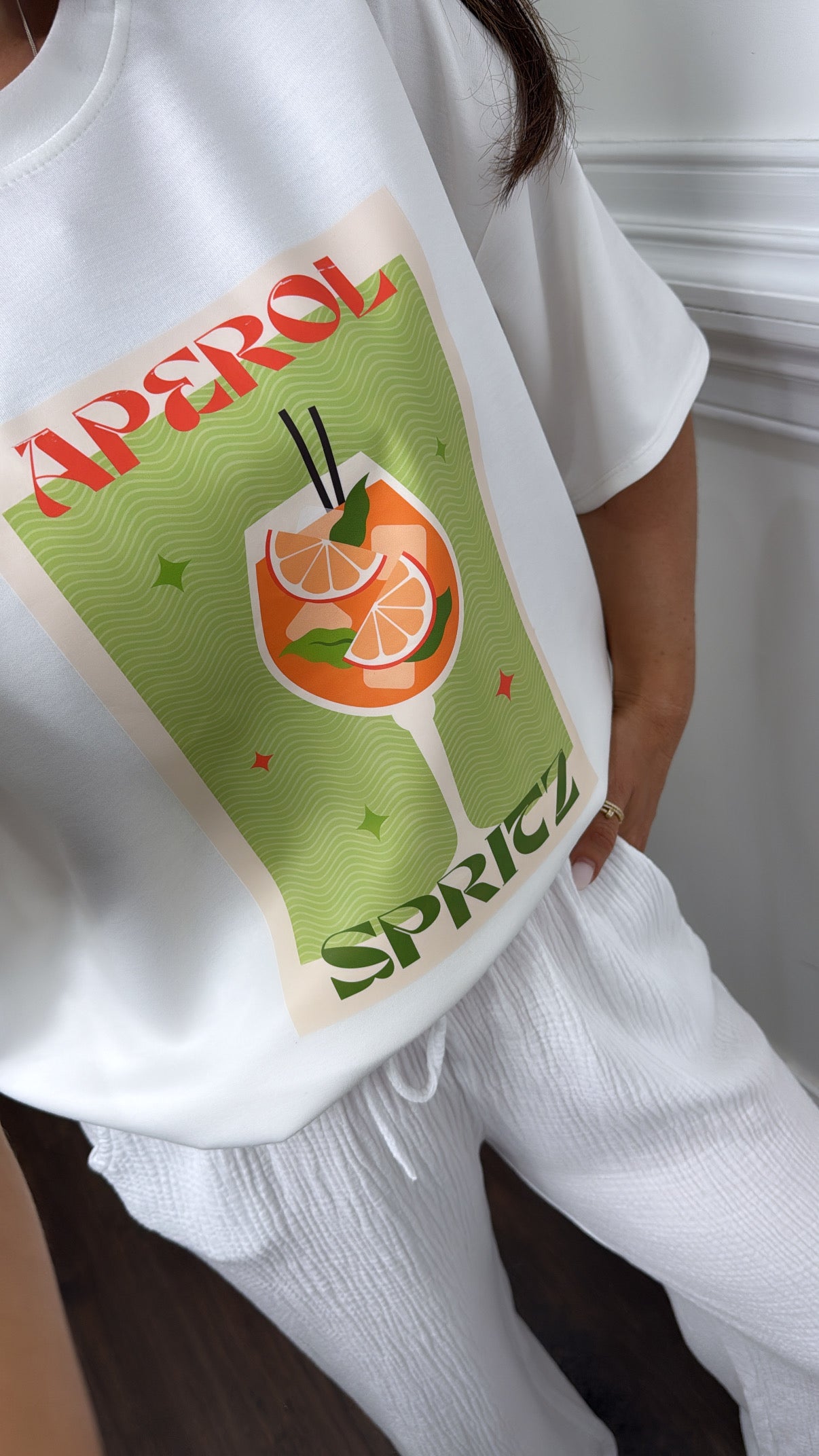 Indulge in the ultimate combination of style and comfort with our APEROL SPRITZ white t-shirt. Made from super soft material, this top features a vibrant logo that will make heads turn. Perfect for any casual occasion, pair it with your favourite jeans for an effortlessly chic look. Cheers to fashion!